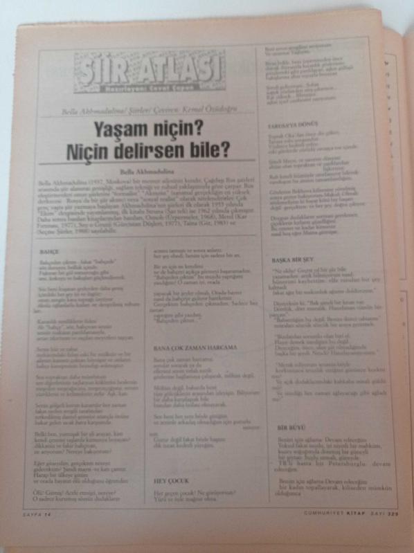 Bella Akhmadulina - Yaşam Niçin Delirsen Bile - Avcının İzini Süren Bir Şair Abdulkadir Budak - Okuma Defteri - Ali Akay- Doğu Perinçek - Cumhuriyet Kitap adlı eser Türkçe dilindedir.