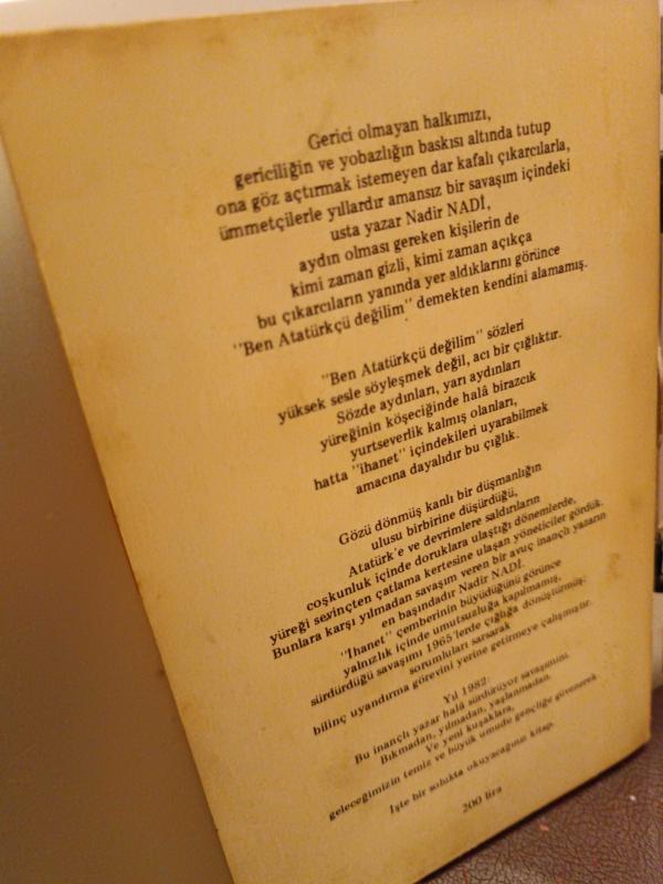 Ben Atatürkçü Değilim ( İthaflı , İmzalı) Piyanist Magdi Rufer Eyüboğlu, Nadir Nadi tarafından kaleme alınmıştır. Kitap 1982 yılında Çağdaş Yayınları tarafından yayınlanmıştır. 193 sayfadır. Ben Atatürkçü Değilim ( İthaflı , İmzalı) Piyanist Magdi Rufer Eyüboğlu adlı eser Türkçe dilindedir.