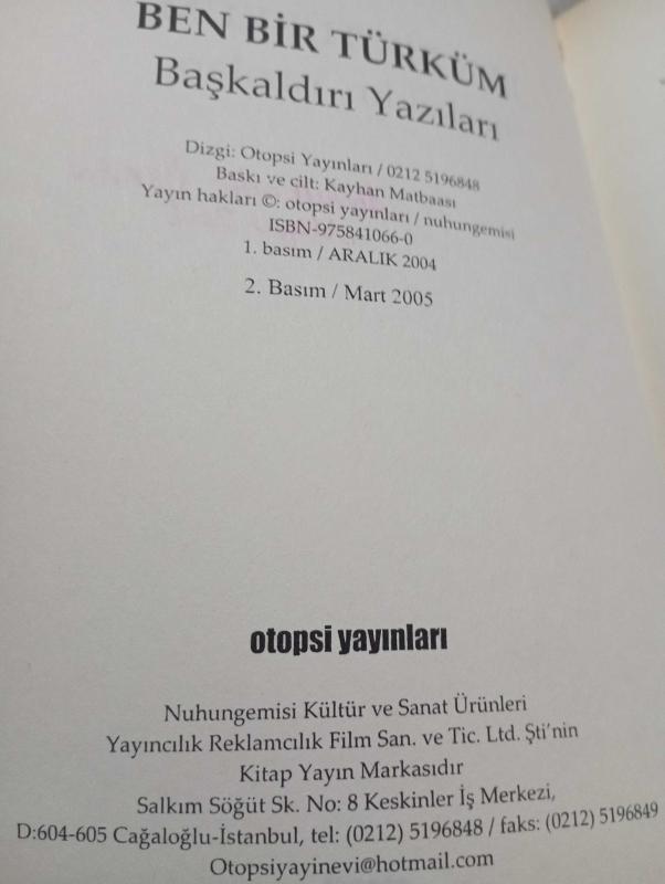 Ben Bir Türküm, Metin Yetkin tarafından kaleme alınmıştır. Kitap 2005 yılında Otopsi Yayınları tarafından yayınlanmıştır. Satışta olan kitap, yayınevinin 2. baskısıdır. Ben Bir Türküm adlı eser Türkçe dilindedir.