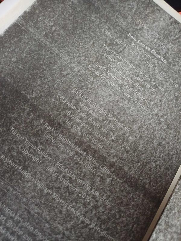 Ben, Earl ve Ölen Kız Çiltli, Jesse Andrews tarafından kaleme alınmıştır. Kitap 2016 yılında Pegasus Yayıncılık tarafından [İstanbul] yayınlanmıştır. Bu baskının çevirisi Sevinç Seyla Tezcan tarafından yapılmıştır. 327 sayfadır. Ben, Earl ve Ölen Kız Çiltli adlı eser Türkçe dilindedir.
