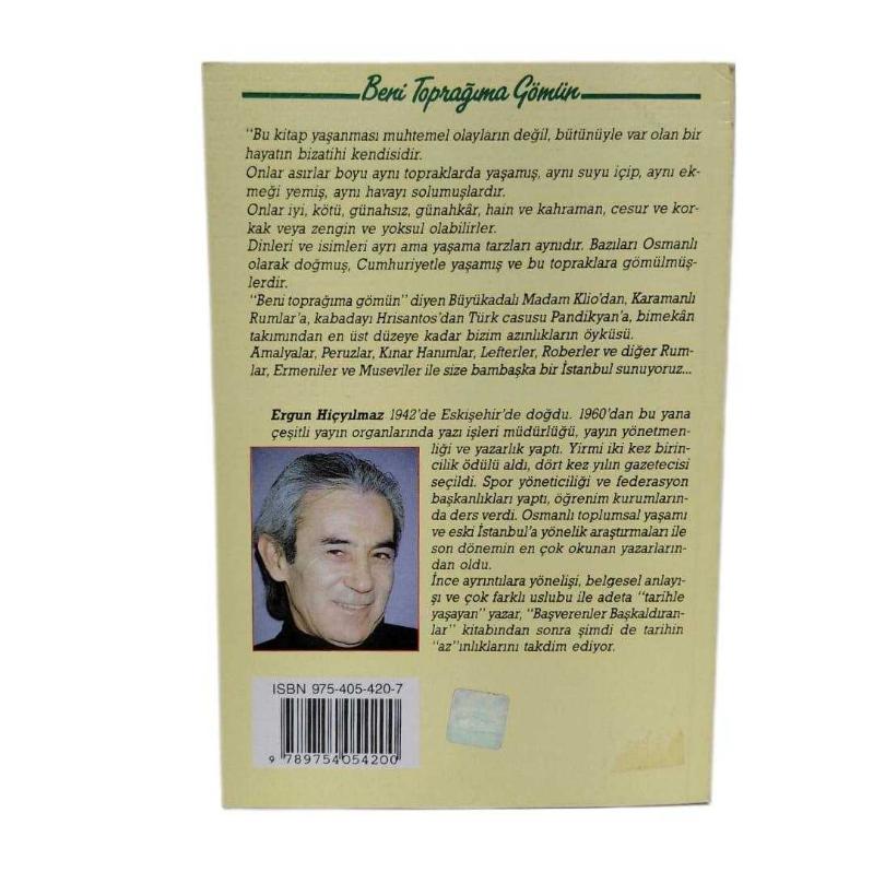 Asırlar boyu aynı topraklarda yaşamış, aynı suyu içip aynı ekmeği yemiş ve aynı havayı solumuşlardı. İyi ve kötü, günahsız ve günahkâr, hain ve kahraman, cesur ve korkak, bilgili ve cahil, zengin ve yoksuldular. Bazen devletin en üst katında makam sahibi, bazen çıkmaz sokağın numarasız bir evinin sakiniydiler. Dinleri, dilleri ve isimleri ayrı ama hayat tarzları aynıydı. Onlar azdı, azınlıktı; bazıları Osmanlı olarak doğmuş, Türk olarak yaşamış ve ölmüştü. Rum, Ermeni veya Museviydiler... Gayrimüslim olmalarının dışında bizden farklı değildiler aslında. Aynı sıralarda dirsek çürüttüğümüz, aynı kışlalarda beraber nöbet tuttuğumuz, aynı heyecanla sevgiler ve sevdalar paylaştığımız onlardı. Ergun Hiçyılmaz, Beni Toprağıma Gömünde işte o ötekilerin dramlarına tutuyor fenerini. Ne karalamayı amaç edinip, düşmanlığı körüklüyor, ne de yersiz ve abartılmış bakışla övgüler yağdırıyor kahramanlarına. Olduğu gibi, bu toprakların insanlarını anlatan bir kitap sunuyor okuyucusuna. Yaşanan onca acıdan sonra, sevgi ve saygı dolu bir dünyanın paylaşımına birer demet çiçek olsun ve dostluğa çağrıda bulunsun diye