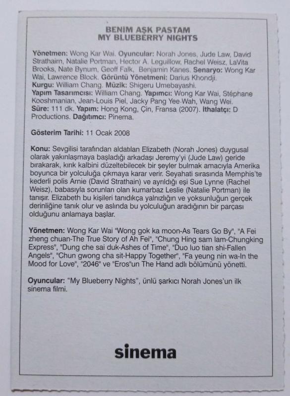 Benim aşk pastam / My blueberry nıghts - Wong Kar Eşi fılm ~ [ SİNEMA KARTI ], en son 4 ay önce güncellenmiştir.