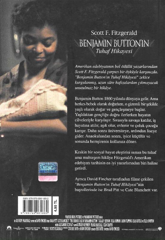 Benjamin Button'ın tuhaf hikayesi, Scott F. Fitzgerald tarafından kaleme alınmıştır. Kitap 2009 yılında Profil Yayıncılık tarafından [İstanbul] 978-975-996-186-2 ISBN kodu ile yayınlanmıştır. Bu baskının çevirisi Zeynep Ertan tarafından yapılmıştır. 78 sayfadır. Benjamin Button'ın tuhaf hikayesi adlı eser Türkçe dilindedir.