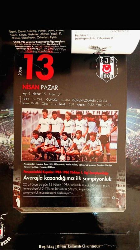 Beşiktaş 365 gün takvimi Baba Hakkı Süleyman Seba Sanlı Zekeriya Vedat Metin Ali Feyyaz Amokachi İlhan Sergen futbol tarihi adlı eser Türkçe dilindedir.