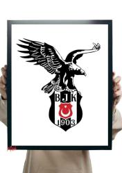 Beşiktaş Logo Amblem Poster Kara Kartal Siyah Beyaz 30x45Cm A3 Hd 4K Çözünürlük Kuşe Kağıt + Bant