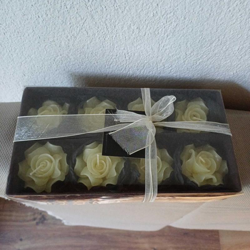 Beymen Home'dan orjinal kutusunda hic kullanilmamis,8 adet krem rengi gül formunda mum. Yaklasik 5.5 cm cspinda. Kutu boyutlari ise. 23x12x5 cm