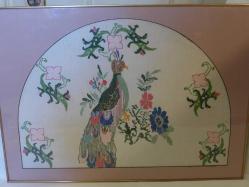 Bez Üzerine El İşleme tavus kuşu kanaviçe tablo 73x52 cm Pirinç çerçeve içinde Tamamen el işlemesi