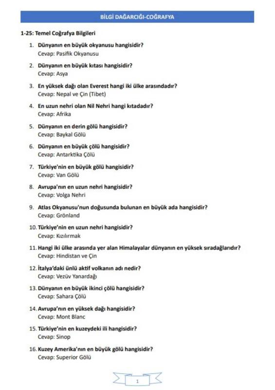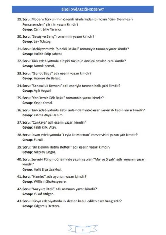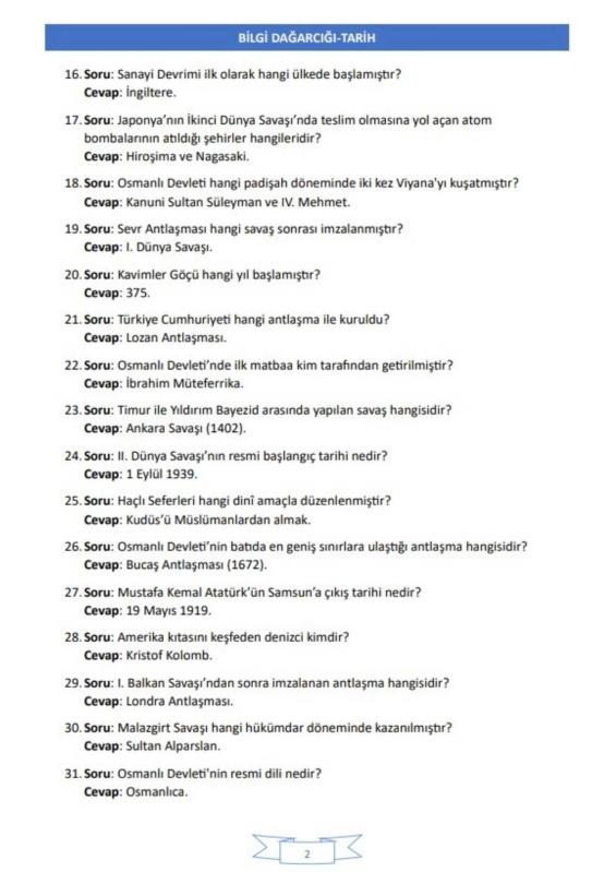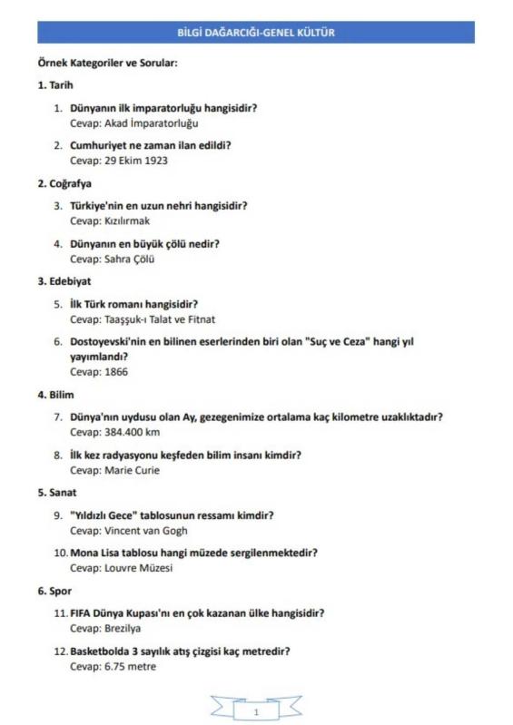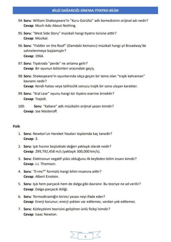 Bilgi Yarışmalarına Hazırlık Soru Bankası (2500 Soru) Türkiye’de İLK Defa Bilgi Yarışmalarına Hazırlık Soru Bankası Yapay Zeka Tarafından Yarışmalarda Sorulabilecek 2500 soru tespit edilmiştir. Son 250 Soru ise Kim Milyoner Yarışmasında Çıkan 250 sorudur. Sorular soru-cevap şeklinde hazırlanmıştır. Bu kitabı bir defa okumanız yeterlidir. Kitap dijital baskılı ve spirallidir. Kolay kullanım için spiralli olarak hazırlanmıştır. 2500 Soru-Cevapla okuma yazma bilen herkes üniversite mezunundan daha fazla bilgiye sahip olacaksınız. - 9 yaş ve üzeri öğrenciler için özel olarak hazırlanmış, bilgi yarışmalarına yönelik 2500 sorudan oluşan kapsamlı bir kaynak. - Türkçe basım dili ile hazırlanmış, anadilinizde rahatça çalışabileceğiniz içerik. - Tekil ürün olarak sunulan bu kitap, bilgi yarışmaları için bireysel kullanım için idealdir. - Büyük boy tasarımı sayesinde okuma kolaylığı sağlar ve geniş bir çalışma alanı sunar. ÖZEL Çalışmadır. Hem 2500 Bilgiyi hafızalarımıza yerleştirmiş olacağız. Hem de yarışmalara girdiğimizde ciddi bir başarı elde etmiş olacağız. Kitap büyük boydur. Bilgi Yarışmalarına Hazırlık Soru Bankası (2500 Soru) Açıklamaları: BİLGİ DAĞARCIĞI-GENEL KÜLTÜR 1000 BİLGİ DAĞARCIĞI-TARİH 250 BİLGİ DAĞARCIĞI-TARİH 250 BİLGİ DAĞARCIĞI-EDEBİYAT 250 BİLGİ DAĞARCIĞI-SİNEMA-TİYATRO-BİLİM 250 BİLGİ DAĞARCIĞI-SPOR-SANAT-MÜZİK 250 Kim Milyoner Yarışmasında Çıkan 250 Soru Cilt Özellikleri : Sarff 450Mic. A4 Şeffaf Kapak (Sert Kapak) Şeffaf kapağın altında kitabın renkli kapağı yer almaktadır. Sert Kapak (Dış Kapak) Özellikleri: 450 Micron Buzlu Şeffaf Kapak (Sert Kapak) Kraft Cilt (Arka Kapak) Özellikleri: Kraft Kağıt ham maddesi odun selülozudür. Suya dayanıklıdır. Kopma mukavemetlidir. Neme dayanıklıdır. Helezon Özellikleri: Sarff 14 mm Pvc Helezon Spiral Şeffaf (4:1) flament çapı 1,8 dır.