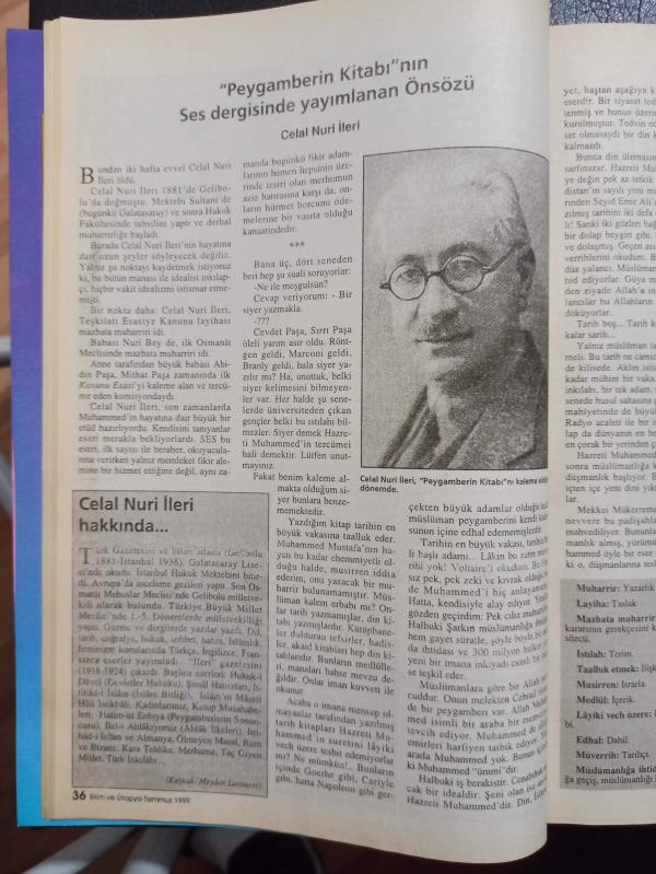 Bilim ve Ütopya Dergisi- Temmuz 1999- Hz. Muhammed'in tarihteki rolü- Atatürk'e göre Muhammed- Gübrelerin gelişimine kısa bir bakış- Madde nasıl gerçek olur?- Deniz Tutkusu, Milliyet tarafından kaleme alınmıştır. Kitap 1999 yılında yayınlanmıştır. 96 sayfadır. Bilim ve Ütopya Dergisi- Temmuz 1999- Hz. Muhammed'in tarihteki rolü- Atatürk'e göre Muhammed- Gübrelerin gelişimine kısa bir bakış- Madde nasıl gerçek olur?- Deniz Tutkusu adlı eser Türkçe dilindedir.