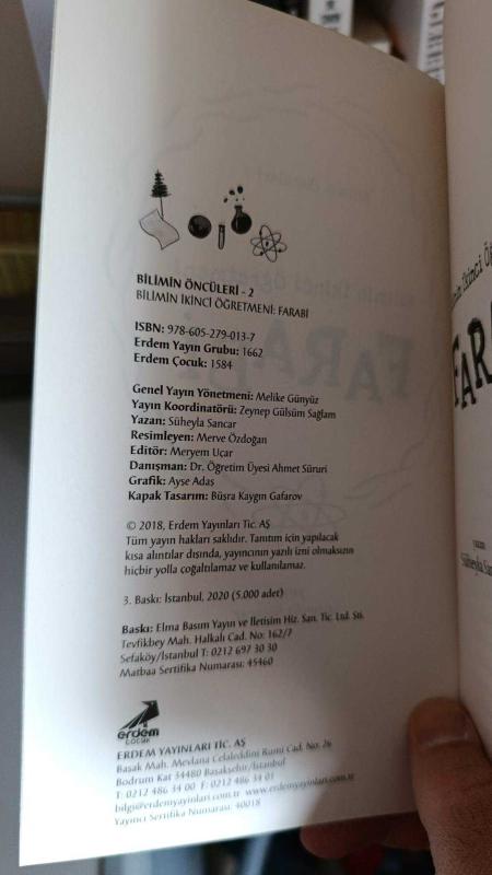 Bilimin İkinci Öğretmeni Farabi, Suheyla Sancar tarafından kaleme alınmıştır. Kitap 2020 yılında ERDEM ÇOCUK YAYINLARI tarafından [İstanbul] 9786052790137 ISBN kodu ile yayınlanmıştır. Bilimin İkinci Öğretmeni Farabi adlı eser Türkçe dilindedir.