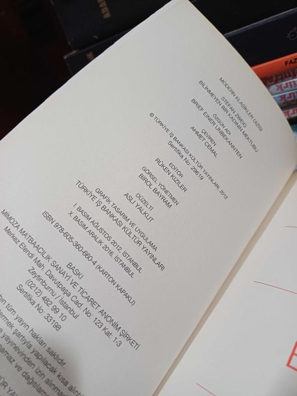 Bilinmeyen Bir Kadının Mektubu adlı eser, Kitap > Edebiyat, Kurgu > Roman > Dünya Edebiyatı kategorisinde İkinci El olarak satıştadır.