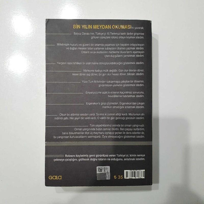 “Değerli okurlar; Bin Yılın Meydan Okuması” adıyla yazdığım bu kitapla; Kumpas Davaları olarak da bilinen Ergenekon, Balyoz vb. davaların dünya siyasal sistemi içinde nerede yer aldığını, bu davaların 1000 yıllık sorun diye, üstü kapalı konuşulan sorunla ve 15 Temmuz 2016 darbe girişimiyle bağlantısının ne olduğunu, “Biz bu toprakları istiyoruz, üzerindeki insanları değil” diyen emperyalizmin asıl amacını, dönemin Genelkurmay Başkanları Orgeneraller İlker Başbuğ, Işık Koşaner ve Necdet Özel’in o dönemde ve sonrasında nasıl konumlandığını, milletimizin huzurlu ve güvenli bir ortamda yaşaması için hayatını ortaya koyan ve dağları mesken tutan, yurtsever subayların dramını, onların ve avukatlarının mahkeme duvarlarını aşamayan içten duygularını ve daha fazlasını yansıtmak istedim. Balyoz Davasında iki defa tutuklanan, Silivri Cezaevinde üç yıl tutuklu kalan, ben Emekli Kurmay Albay Mümtaz Can; Kurmay Subaylara uzun yıllar Strateji ve Taktik dersleri veren bilgi birikiminin yanı sıra, içinde fiilen yaşadığım Balyoz Davasının duruşmalarında tuttuğum notları tekrar inceleyerek, binlerce sayfalık duruşma tutanaklarını tarayarak, o günlerdeki medya haberlerini geriye dönük araştırarak, Balyoz Davasında yargılanan arkadaşlarımın yazdıkları kitapları okuyarak, Cezaevinde tuttuğum günlükleri gözden geçirerek ve o günleri zihnimde tekrar yaşayarak yazdım bu kitabı. Ben yazar değilim, askerim, yazarlık konusunda da iddiam yok. Yine de, bilgi dolu ama sıkıcı bir kitap olmaması için, akıcı bir dille ve roman üslubuyla yazmaya çalıştım. Ben Cumhuriyet sevdalısı, Atatürkçü bir aydınım. Karanlık döneme bir nebze ışık tutabilirsem, topluma karşı görevimi yapmanın huzurunu duyacağım.