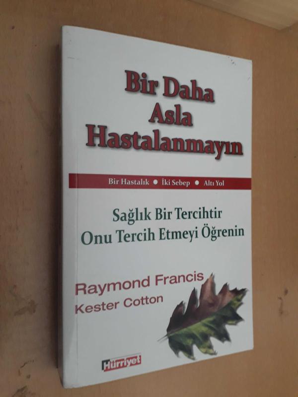 Bir Daha Asla Hastalanmayın (Sağlık Bir Tercihtir Onu Tercih Etmeyi Öğrenin), Raymond Francis, Kester Cotton tarafından kaleme alınmıştır. Kitap 2011 yılında Butik Yayıncılık & HÜRRİYET tarafından yayınlanmıştır. Bu baskının çevirisi MERVE DUYGUN tarafından yapılmıştır. 418 sayfadır. Bir Daha Asla Hastalanmayın (Sağlık Bir Tercihtir Onu Tercih Etmeyi Öğrenin) adlı eser Türkçe dilindedir.