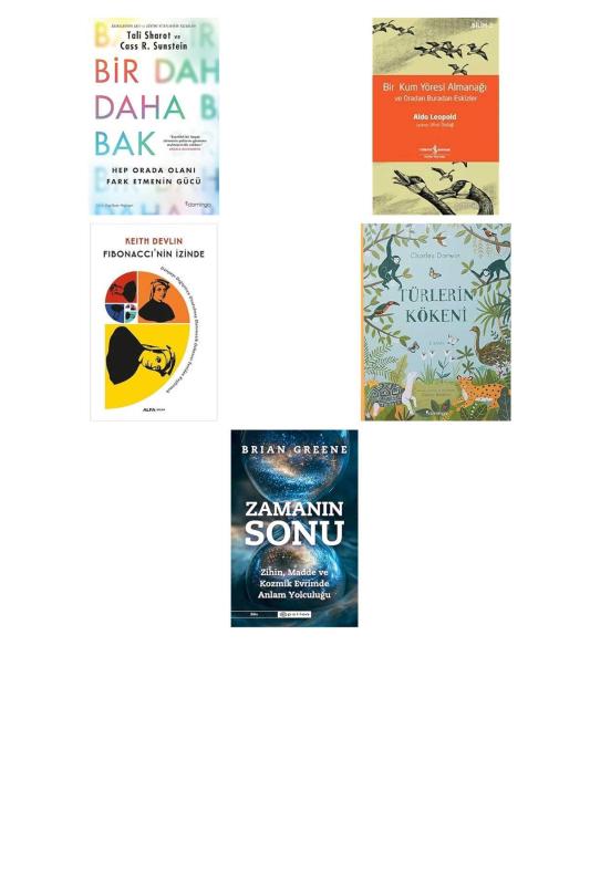 Bir Daha Bak - Hep Orada Olanı Fark Etmenin Gücü - Bir Kum Yöresi Almanağı ve Oradan Buradan Eskizler: A Sand County Almanac and Sketches Here and There - Fibonacci'nin İzinde: Dünyayı Değiştiren Unutulmuş Matematik Dehasını Yeniden Keşfetmek - Türlerin Kökeni (Ciltli) - Zamanın Sonu: Zihin Madde ve Kozmik Evrimde Anlam Yolculuğu
