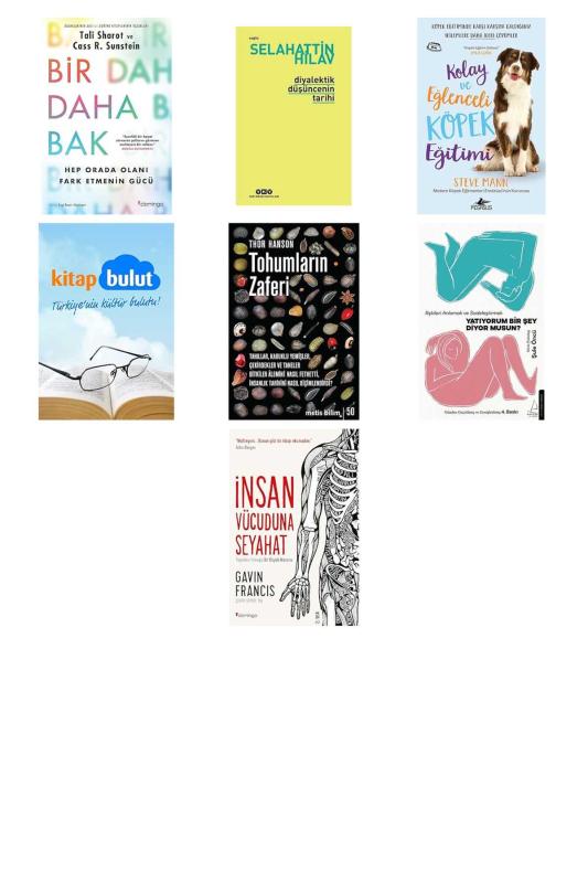 Bir Daha Bak - Hep Orada Olanı Fark Etmenin Gücü - Diyalektik Düşüncenin Tarihi - Kolay ve Eğlenceli Köpek Eğitimi: Köpek Eğitiminde Karşı Karşıya Kaldığınız İkilemlere Daha İleri Çözümler - Son Moda Saçmalar: Postmodern Aydınların Bilimi İstismar Etmesi - Tohumların Zaferi: Tahıllar, Kabuklu Yemişler, Çekirdekler ve Taneler Bitkiler Alemini Nasıl Fethetti, İnsanlık Tarihini Nasıl Biçimlendirdi? - Yatıyorum Bir Şey Diyor Musun? - İnsan Vücuduna Seyahat: Tepeden Tırnağa Bir Büyük Macera