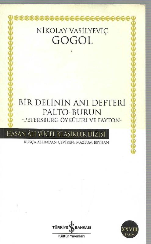 Bir Delinin Anı Defteri (Palto-Burun) - Petersburg Öyküleri Ve Fayton, Nikolay Vasilyeviç Gogol tarafından kaleme alınmıştır. Kitap 2022 yılında Türkiye İş Bankası Kültür Yayınları tarafından [İstanbul] yayınlanmıştır. Bu baskının çevirisi Mazlum Beyhan tarafından yapılmıştır. 223 sayfadır. Bir Delinin Anı Defteri (Palto-Burun) - Petersburg Öyküleri Ve Fayton adlı eser Türkçe dilindedir.
