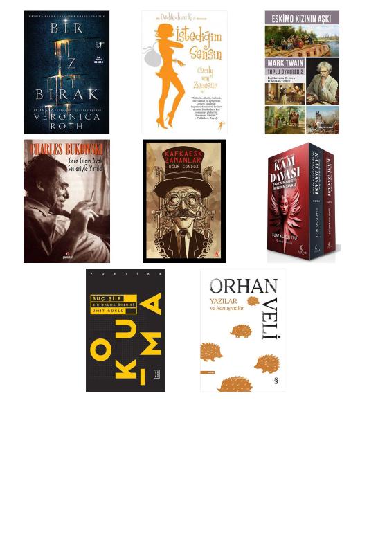 Bir İz Bırak - Dedikoducu Kız 6 - İstediğim Sensin - Eskimo Kızının Aşkı - Gece Çılgın Ayak Sesleriyle Yırtıldı - Kafkaesk Zamanlar - Kam Davası Takım 1-2 - Suç Şiir - Bir Okuma Önerisi - Yazılar ve Konuşmalar