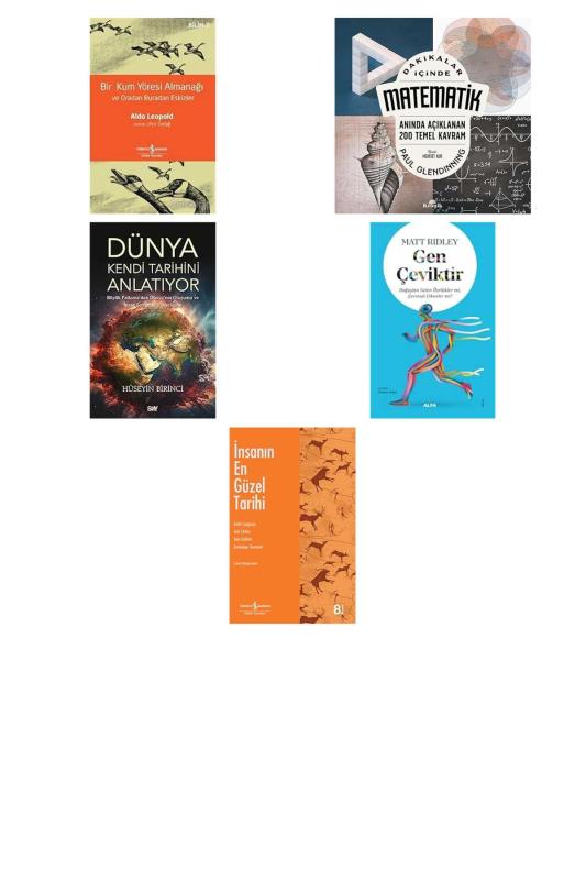 Bir Kum Yöresi Almanağı ve Oradan Buradan Eskizler: A Sand County Almanac and Sketches Here and There - Dakikalar İçinde Matematik - Anında Açıklanan 200 Temel Kavram - Dünya Kendi Tarihini Anlatıyor: Büyük Patlama’dan Dünya’nın Oluşumu ve İnsan Soyunun Yükselişine - Gen Çeviktir: Doğuştan Gelen Özellikler mi, Çevresel Etkenler mi? - İnsanın En Güzel Tarihi