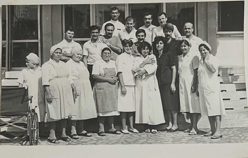 Bir hastahanede yeni doğum yapmış kadın ile poz veren yakınları ve ebelerin fotoğrafı.ORJİNAL SİYAH & BEYAZ 17x12cm EBADINDA - 1940'LAR, 1950'LER, 1960'LAR ve 1970'LER, en son 11 ay önce güncellenmiştir.