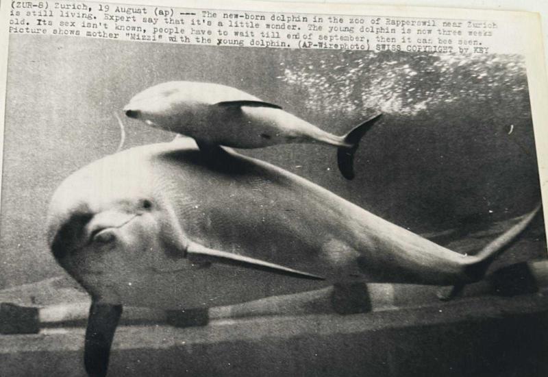 Bir havuzun içinde yavrusu ile beraber yüzerken çekilmiş olan yunus balığı fotoğrafı.ORJİNAL SİYAH & BEYAZ 20x15cm EBADINDA - 1940'LAR, 1950'LER, 1960'LAR ve 1970'LER, en son 11 ay önce güncellenmiştir.