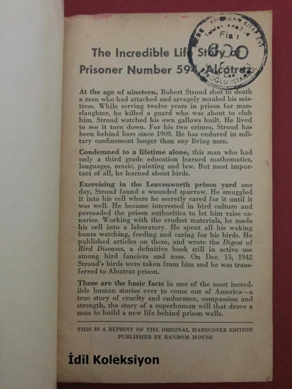 Birdman of Alcatraz - Thomas E. Gaddis - Signet Book (Alcatraz Kuşçusu) İngilizce Roman, Thomas E. Gaddis tarafından kaleme alınmıştır. Eser - editörlüğünde hazırlanmıştır. Kitap 1958 yılında Signet Book tarafından [New York] yayınlanmıştır. Bu baskının çevirisi - tarafından yapılmıştır. 253 sayfadır. Sayfa bilgisi - olarak belirtilmiştir. Birdman of Alcatraz - Thomas E. Gaddis - Signet Book (Alcatraz Kuşçusu) İngilizce Roman adlı eser İngilizce dilindedir.