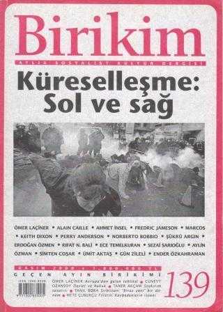 Birikim Aylık Sosyalist Kültür Dergisi Yıl: Kasım 2000 Sayı: 139 "Küreselleşme: Sol ve Sağ, Kolektif tarafından kaleme alınmıştır. Kitap 2000 yılında Birikim tarafından [İstanbul] yayınlanmıştır. Satışta olan kitap, yayınevinin 1. baskısıdır. 128 sayfadır. Sayfa bilgisi Enzo olarak belirtilmiştir. Birikim Aylık Sosyalist Kültür Dergisi Yıl: Kasım 2000 Sayı: 139 "Küreselleşme: Sol ve Sağ adlı eser Türkçe dilindedir.