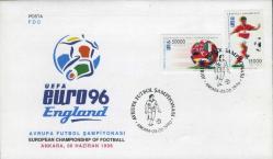 Birinci Gün Zarfı (FDC)-1996 UEFA "EURO'96" Avrupa Futbol Şampiyonası FDC, bir ay önce satışa sunulmuştur.