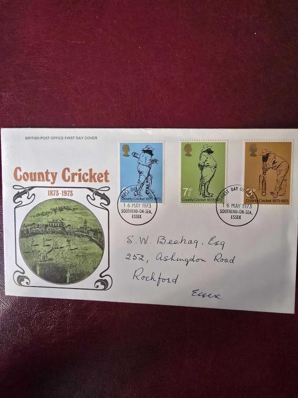 Konu: 100 Yıllık Kontluk Kriket (County Cricket Centenary).Çıkış Tarihi: 16 Mayıs 1973.Tasarımcı: Edward M. Ripley.Pullar: Zarfın üzerinde, seriye ait üç adet pul bulunmaktadır:3p (Penny) değeri.$7\frac{1}{2}\text{p}$ değeri.9p (Penny) değeri.İptal Damgası (Postmark): Pulların üzerinde, pulun İlk Gün Zarfı olduğunu gösteren özel bir iptal damgası vardır. Sizin zarfınızdaki damga, pulun resmi çıkış yeri olan Southend-on-Sea, Essex'e ait görünüyor.Kapak (Zarf) Tasarımı: Zarfın solunda, kriket sahasını gösteren dairesel bir resim ve "County Cricket 1873-1973" başlığı yer almaktadır. Bu, Britanya Posta Ofisi'nin resmi zarfıdır.
