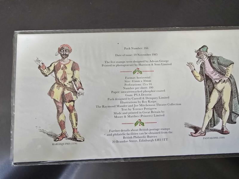 pulların tertemiz (mint) halde saklandığı ve içinde konuyla ilgili bilgi kartı bulunan özel bir koleksiyon paketidir. Bu seri, İngiliz Noel geleneklerinden biri olan tiyatro pantomimlerini konu alır. Set içerisinde 5 adet pul bulunmaktadır: 12p: Principal Boy (Başrol Erkek - Genelde kadınlar tarafından canlandırılır) 17p: Genie (Cin - Alaaddin) 22p: Dame (Pantomim karakteri - Genelde erkekler tarafından canlandırılan yaşlı kadın) 31p: Good Fairy (İyilik Perisi) 34p: Pantomime Cat (Pantomim Kedisi)