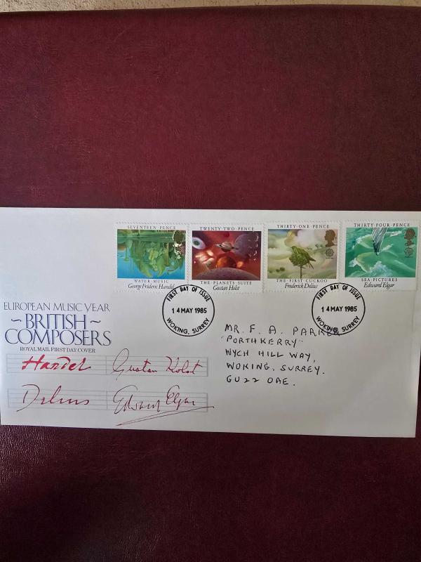 YaBu seri, Britanya tarihinin en önemli dört bestecisini ve onların ikonik eserlerini konu alır: Handel (17p): "Water Music" (Su Müziği) eseri tasvir edilmiştir. Gustav Holst (22p): "The Planets Suite" (Gezegenler Süiti) temalıdır. Frederick Delius (31p): "The First Cuckoo" temalıdır. Edward Elgar (34p): "Sea Pictures" (Deniz Resimleri) eseri işlenmiştir. Zarfın üzerinde Woking, Surrey damgası bulunmaktadır. Damga tarihinin pulların çıkış tarihiyle (14 May 1985) tam uyumlu olması, zarfın "İlk Gün Zarfı" özelliğini tesciller.
