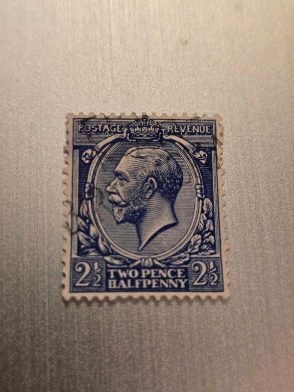 Ülke: Birleşik Krallık (Great Britain) Portre: Kral V. George (King George V) Nominal Değeri: 2½ Pence (Two Pence Halfpenny) Renk: Ultramarin (Mavi tonu) Tür: Definitif (Sürekli seri) pul. "Postage Revenue" ibaresi, hem posta gönderilerinde hem de mali (vergi) işlemlerinde kullanılabildiğini gösterir. 2. Emisyon (Basım) Yılı Bu tasarım, Kral V. George'un tahtta olduğu süre boyunca farklı filigran (kağıt içi desen) ve baskı yöntemleriyle birkaç kez yenilenmiştir: İlk Basım: Bu spesifik tasarımın (profil portre) 2½ d'lik mavi versiyonu ilk olarak 1912 yılında basılmaya başlanmıştır. Basım Dönemi: 1924