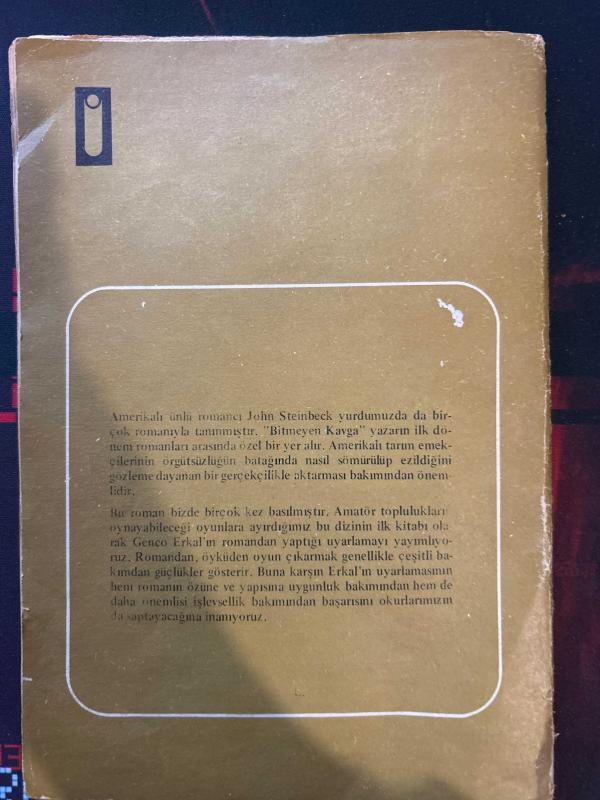 Bitmeyen Kavga - Çeviren ve Oyunlaştıran GENCO ERKAL - BASKI HATALI !!! adlı eser, Kitap > Edebiyat, Kurgu > Tiyatro > Dünya Edebiyatı kategorisinde İkinci El olarak satıştadır.