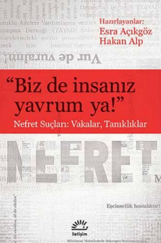 Biz de İnsanız Yavrum ya! (Nefret Suçları: Vakalar, Tanıklıklar), Kolektif tarafından kaleme alınmıştır. Eser Esra Açıkgöz, Hakan Alp editörlüğünde hazırlanmıştır. Kitap 2014 yılında İletişim Yayınları tarafından 9789750516788 ISBN kodu ile yayınlanmıştır. 232 sayfadır. Biz de İnsanız Yavrum ya! (Nefret Suçları: Vakalar, Tanıklıklar) adlı eser Türkçe dilindedir.