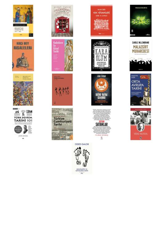 Bizans’tan Türkiye'ye 1071 - 1453 - Eczanedeki Kırmızı Dolap - Ege Efsaneleri - Gizemli Olaylar - KOÇİ BEY RİSALELERİ - Kadınların En Güzel Tarihi - Kara Ölüm - Malazgirt Muharebesi - Mehdilik ve Şahkulu Ayaklanması - Milattan Önce Tarihin Ana Hatları - Mim Mim Grubu - Orta Avrupa Tarihi - Türk Devrim Tarihi 101 - Türkiye Cumhuriyeti Tarihi - Vatanı Satanlar - Yeni Rusya - İnsanlığın Serüveni