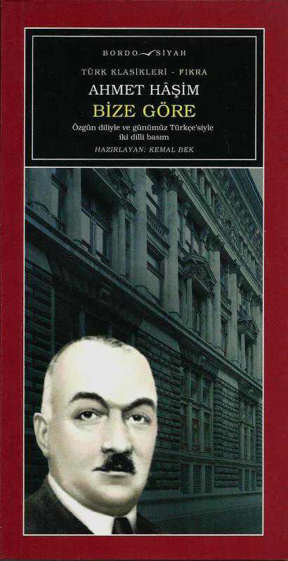 Bize Göre -özgün diliyle ve günümüz Türkçe'siyle iki dilli basım-, Ahmet Haşim tarafından kaleme alınmıştır. Eser Kemal Bek editörlüğünde hazırlanmıştır. Kitap 2016 yılında Bordo Siyah Yayınları tarafından [İstanbul] 975-998-079-7 ISBN kodu ile yayınlanmıştır. Bize Göre -özgün diliyle ve günümüz Türkçe'siyle iki dilli basım- adlı eser Türkçe dilindedir.