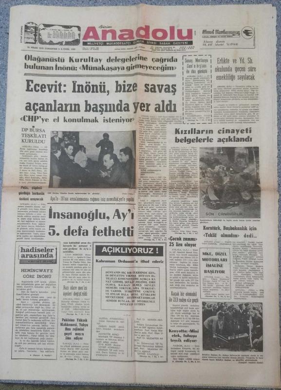 Kitap 1972 yılında yayınlanmıştır. 8 sayfadır. Bizim Anadolu Milliyetçi Mukaddesatçı Günlük Siyasi Sabah Gazetesi Yıl 4 Sayı 1084 adlı eser Türkçe dilindedir.