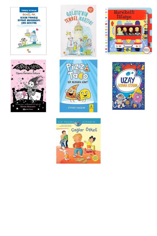 Bizim Tombiş Fiyonk Makarnayı Çok Seviyor: Tombiş Kitaplar Dizisi: 3 - Galata'nın Tembel Martısı: 2, 3, 4. Sınıflar - Hareketli İtfaiye - Isadora Moon 10 - Pijama Partisine Gidiyor - Pizza ve Tako - Bir Numara Kim? - Uzay - Boyama Kitabım - Çağlar Öfkeli - İlk Okuma Kitabım