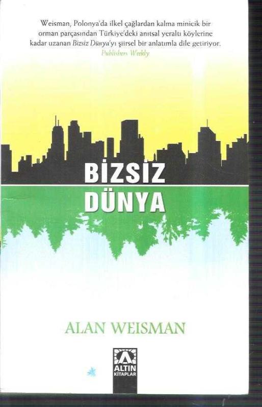 Bizsiz Dünya, Alan Weisman tarafından kaleme alınmıştır. Kitap 2008 yılında Altın Kitaplar tarafından [İstanbul] yayınlanmıştır. Bu baskının çevirisi Füsun Doruker tarafından yapılmıştır. 365 sayfadır. Sayfa bilgisi 2. hamur olarak belirtilmiştir. Bizsiz Dünya adlı eser Türkçe dilindedir.