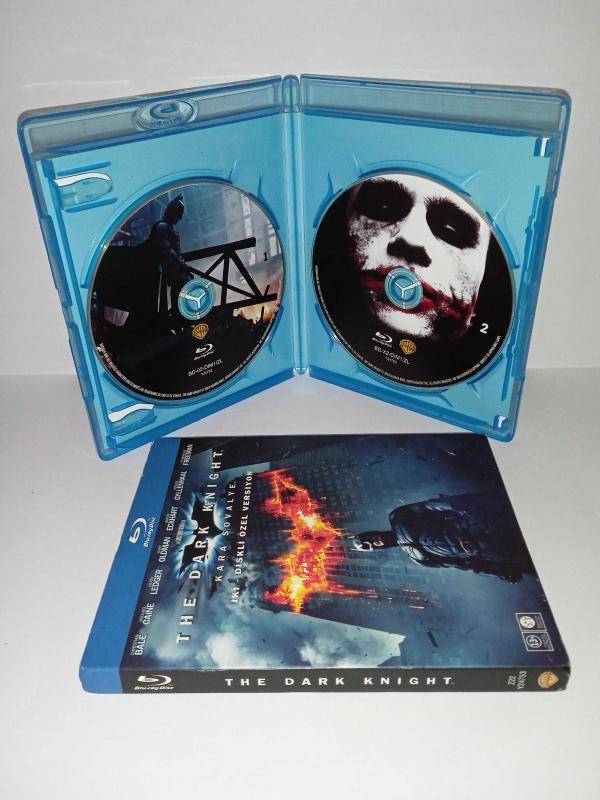 Blu-ray Batman Kara şövalye Bluray. Batman the dark knight. iki diskli özel versiyon. Orijinal TİGLON, Türkçe dublaj ve altyazı seçenekli. 2 Disk. Diskler 10 üzerinden 9.9 Temiz. Karton ceketli. Koleksiyonluk
