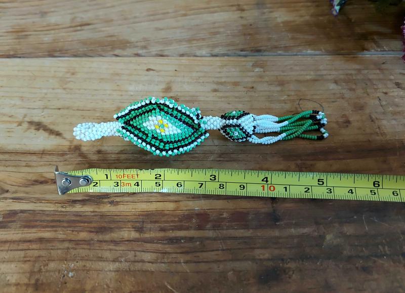 Boncuk İşi Nazarlık Anahtarlık - Cezaevi İşi Nazar Boncuklu Anahtarlık başlıklı antika/koleksiyon objesinin menşei belirtilmemiştir. Objenin ait olduğu dönem bilinmeketedir.