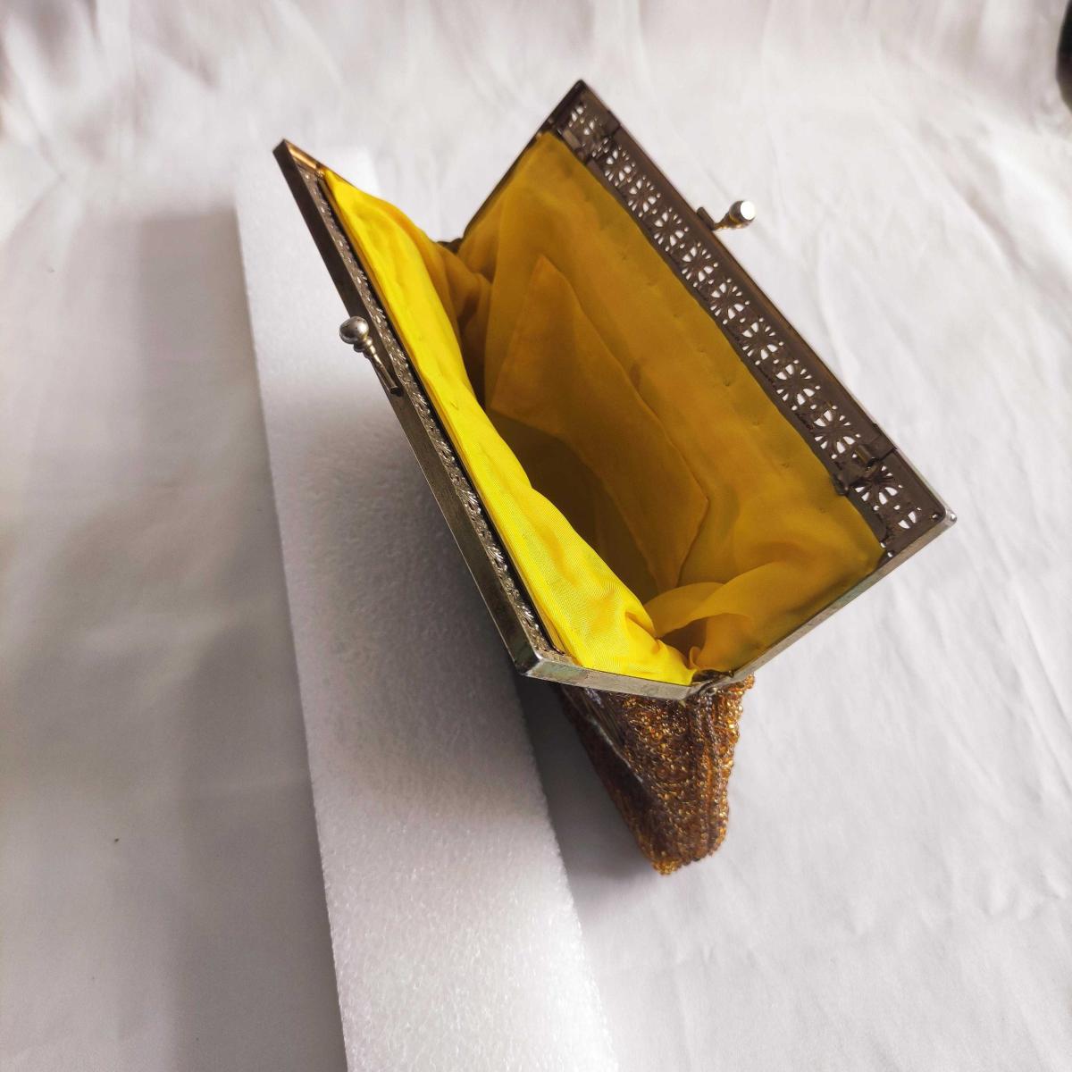 * * Boncuklarla İşlenmiş Kadın Koltukaltı Çantası * - Ağız kısmı metal, iç yüzü sarı saten kaplı. - Cam ve plastik boncuklarla örülmüş. - İkinci el, temiz, sağlam, kullanılabilir durumda obje. - Ürün detayları ayrıntılı çekmeye çalıştığım fotoğraflardadır. - Ebat: 22 x 17,5 cm - - Ürün hakkında aklınıza takılan her türlü soru ve şüphe için lütfen mesaj gönderin. -