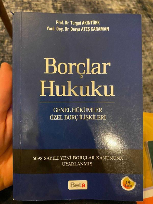 Borçlar Hukuku, Prof.Dr.Turgut Akıntürk, Yard. Doç.Dr. Derya Ateş Karaman tarafından kaleme alınmıştır. Kitap 2012 yılında Beta tarafından [İstanbul] 978-605-377-764-9 ISBN kodu ile yayınlanmıştır. Satışta olan kitap, yayınevinin 19. baskısıdır. 363 sayfadır. Borçlar Hukuku adlı eser Türkçe dilindedir.