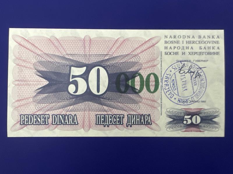 Bosna Hersek 50000 Dinar 1992. Sürşarjlı, Damgalı. Çil., 23 saat önce satışa sunulmuştur.