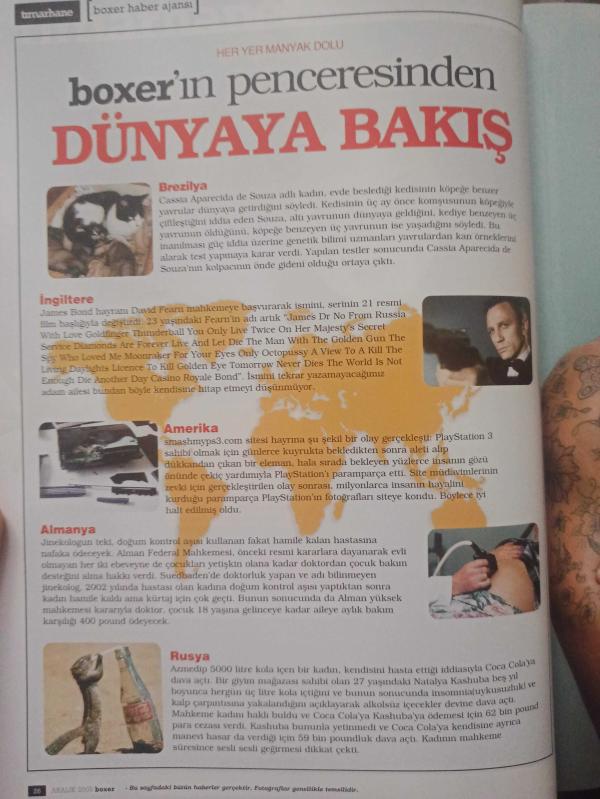 Kitap 2006 yılında yayınlanmıştır. 240 sayfadır. Boxer Dergisi- Aralık 2006- Didem Erol- Mustafa Yücedağ- Dr. Emre Akkuş- Ender Kızıltan- Nejat Talas- Merve Hasman- Bugatti Veyron- Chevrolet Captiva adlı eser Türkçe dilindedir.