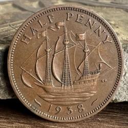 Britanya ½ Penny 1938 Yılı Kral George VI Görselli Madeni Para