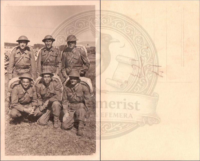 Brodie kasklı ve teçhizatlı altı Türk askerinin arazi hatırası. (Orijinal Fotoğraf, S/B, 1940'lar, 9x14 cm.), en son bir ay önce güncellenmiştir.