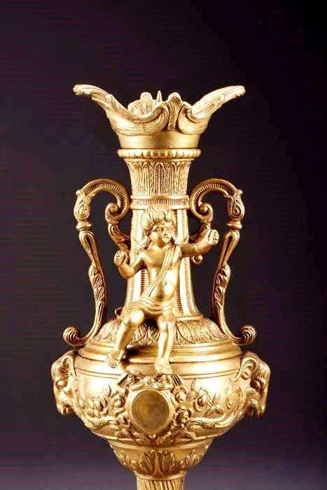 Ürün grubu: Antika bronz ve tutya objeler- Bronz ampir çift mumluk şamdan. Y üzeyi kabartma işçilikli ve eros figürlü, 19.Y.y. Kondisyonu süper. Y:45cm. fransız şamdan, bronz şamdan, fransız bronz şamdan, antika şamdan, ampir şamdan ampir bronz şamdan, 19.Y.y. bronz şamdan, bronz, çift şamdan, bronz mumluk, ampir mumluk, bronz ampir mumluk