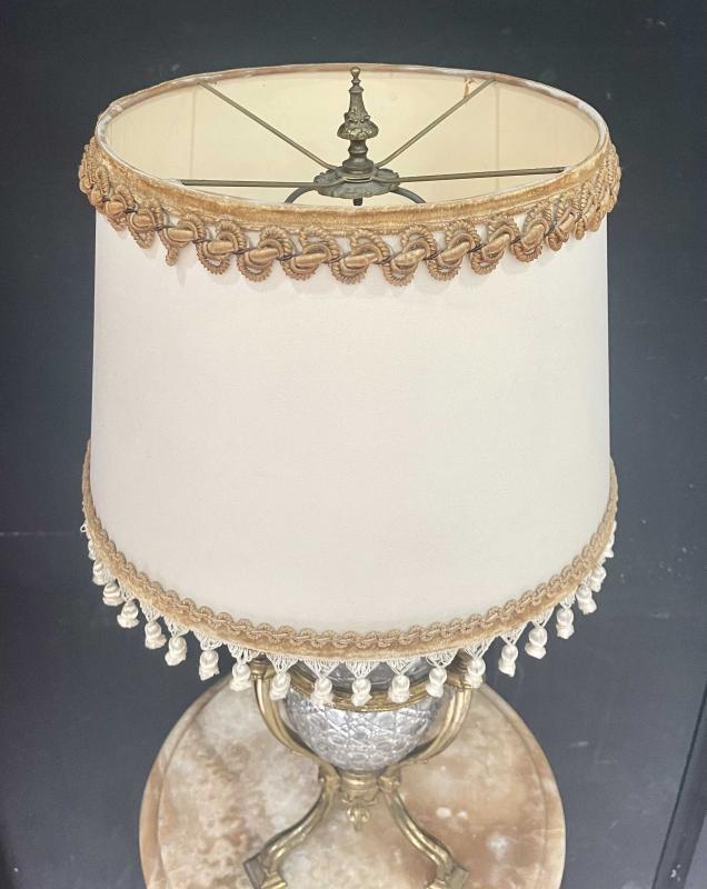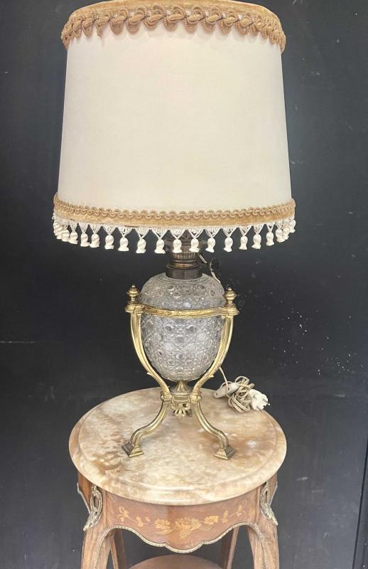 Bronz ayaklı, kristal gövdeli, şapkalı lambader. 19 Y.y. Şapka dahil Y:65 cm. başlıklı antika/koleksiyon objesinin menşei belirtilmemiştir. 1900 öncesi dönemine aittir.