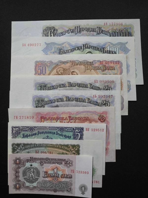 Bulgaristan 1-3-5-10-25-50-100-200 Leva 1951/1974 ÇİL 9 adet, dün satışa sunulmuştur.
