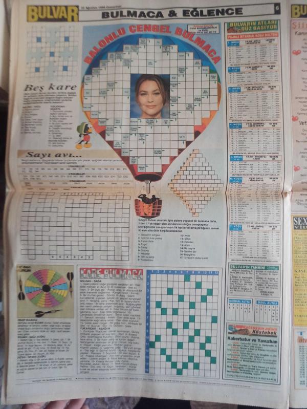 Bulvar Magazin Gazetesi - 22 Ağustos 1998 - Mine Dinç - Bizim Clintonlar Ferda'nın Peşinde - Franz Himmler - Eva Himmler - Kamil Dede Boğa Kesildi - Marie Doburah - Başak Boztepe Erkeklere Kalbini Kapattı - Ayşegül Aldinç - Cenk Eren Vokalistine Yüzmeyi Öğretti - Liseli Aşıklar - Ölüm Doktoru İş Başında - Serhat Bıyık - Nasıl Kıydın Bu Yavruya - Değişen Mevsimler Kadını Fena Azdırır - Şaban Mergül - Başınız Dik Olsun - Ront Köşesi - Erkek Rakı Gibidir Şişedeki Gibi Durmaz - Ben İşimi Bilirim - Laura - Ateşli Anılar - Kürek Cezası Hiç İşime Gelmemişti - Bulmaca & Eğlence - Mine Dinç, Çizgi Ötesine Koşuyor - Trafik Canavarı Araba Sattırdı - Barda Tünüyorlar Erkek Tavlıyorlar - Anreoditt Pausan - Türkan Şoray - Özlem Savaş - Sibel Özcan - Parayı Ver Düdüğü Çal fotoğraf ve haberi - Tam Takım Gazete Yıpranma, sararmalar, kupon kesiği ve yırtılmalar zamana bağlı olarak görülebilir